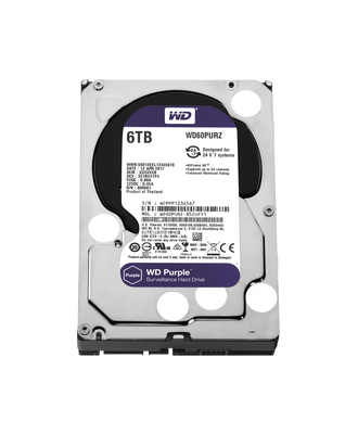Disco duro PURPLE de 6TB para videovigilancia, Marca: WESTERN DIGITAL (WD).